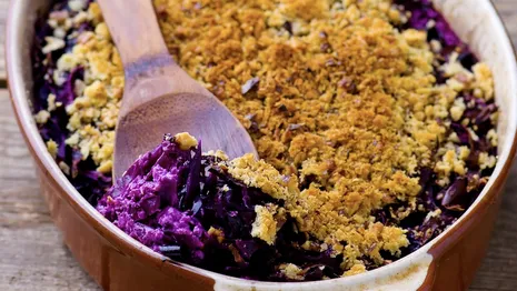 Zo maak je ovenschotel met rodekool en aardappelpuree: