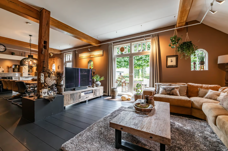 Deze dubbele indeling maakt de boerderij juist zo bijzonder: het voorhuis ademt nog historie, terwijl de verbouwde achterzijde juist een moderne leefkeuken en luxe, eigentijdse woonkamer heeft. Door deze opzet lijkt het net alsof je in dit huis aan het tijdreizen bent: het is een plek waar je geniet van het oude boerderijleven, maar ook van moderne gemakken.