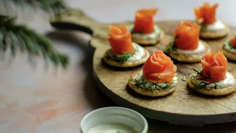Wat dit amusehapje extra bijzonder maakt, is de manier waarop je de gerookte zalm serveert: opgerold in elegante roosjes. Het kost maar een minuutje extra, maar geeft je hapje meteen een chique uitstraling, alsof het rechtstreeks uit een restaurant komt. Leg de zalm losjes in laagjes op elkaar en rol ze zachtjes op tot een roosvorm. Zo krijgt elke blini een luxe finishing touch die niet alleen mooi oogt, maar ook zorgt dat je gasten spontaan hun telefoon erbij pakken voor een foto.