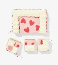 Samen snoepen op Valentijnsdag? Met deze vierkante slagroomtaart zit je sowieso goed. Deze vrolijke taart kost €15,99 en is opgebouwd uit luchtige cake, banketvulling, frambozen-bessenjam en een versiering van slagroom en chocoladeconfetti. Onze tip: bestel 'm alvast online, dan weet je zeker dat je op Valentijnsdag niet voor een lege vitrine staat. De taart staat dan gewoon vers voor je klaar op de gebaksafdeling in je lokale HEMA.