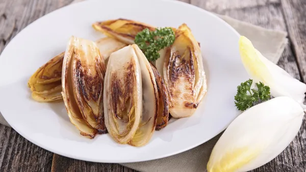 Zo maak je gekaramelliseerde witlof met geitenkaas en honing: