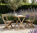 Een goede bistroset valt of staat bij het materiaal. Deze driedelige set is vervaardigd uit massief acaciahout, wat direct een natuurlijke uitstraling geeft aan je buitenruimte. Het hout is bovendien FSC-gecertificeerd, wat betekent dat het afkomstig is uit duurzaam beheerde bossen.