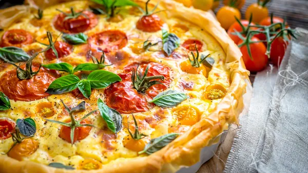Zo maak je de hartige taart met bladerdeeg, feta en tomaatjes: